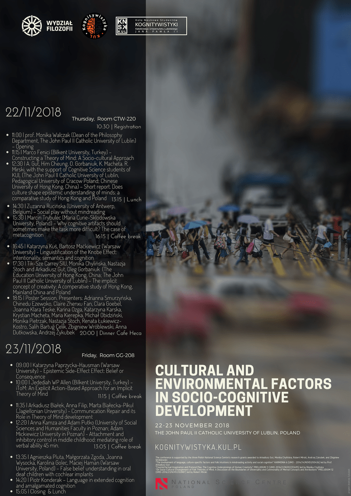 W ramach organizowanej w dniach 20-22 października 2017 r. III Konferencji Avant. Trends in Interdisciplinary Studies pt. Understanding Social Cognition Wydział Filozofii i Kognitywistyka KUL zorganizowały w sobotę, 21 października 2017 r., specjalną konferencję poświęconą mindreadingowi.
