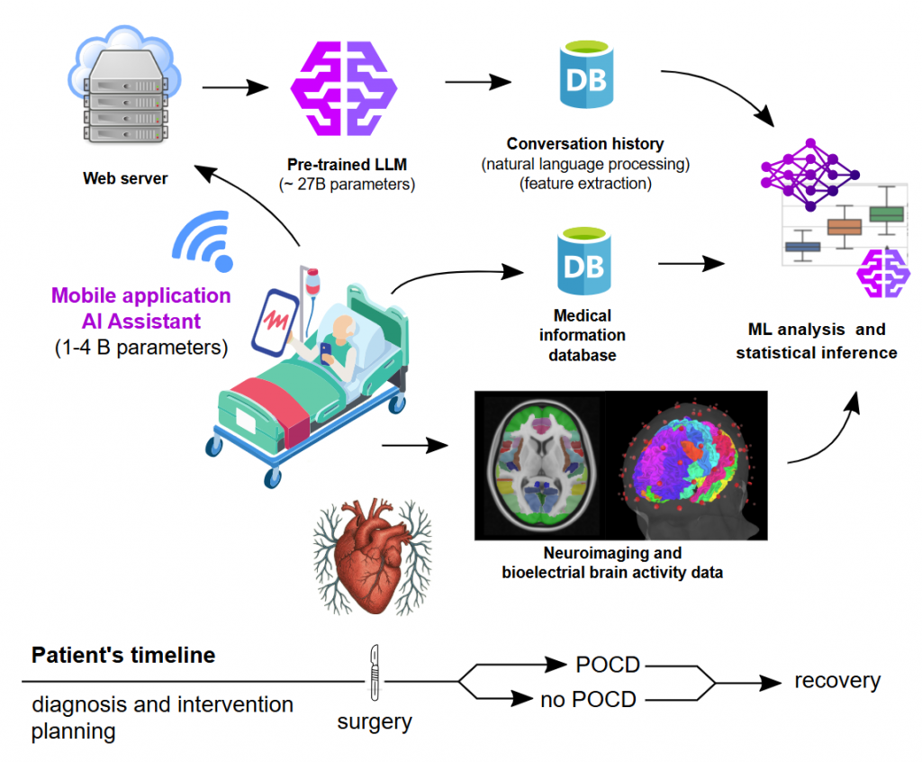 Centralną ramą teoretyczną projektu jest teoria umysłu (ang. Theory of Mind, ToM), łącząca procesy poznawcze, emocjonalne i społeczne. Zakładamy, że zaburzenia funkcji związanych z ToM – takich jak rozumienie własnych stanów psychicznych, percepcja ciała czy relacje społeczne – odgrywają istotną rolę w przebiegu pooperacyjnych zaburzeń poznawczych. Analiza tych kompetencji, zarówno poprzez dialog z systemem AI, jak i dane neuroobrazowe, pozwoli lepiej zrozumieć indywidualne trajektorie zdrowienia.Celem projektu jest stworzenie nowego modelu spersonalizowanej, zdalnej opieki okołooperacyjnej wspieranej przez sztuczną inteligencję, który umożliwi wczesną identyfikację pacjentów zagrożonych PD i ePOCD, lepsze przygotowanie do zabiegu oraz skuteczniejsze wsparcie procesu rekonwalescencji. Integrując neuronaukę, psychologię i AI, projekt otwiera nowe perspektywy dla opieki nad pacjentami kardiochirurgicznymi i promocji odporności psychicznej po operacji.